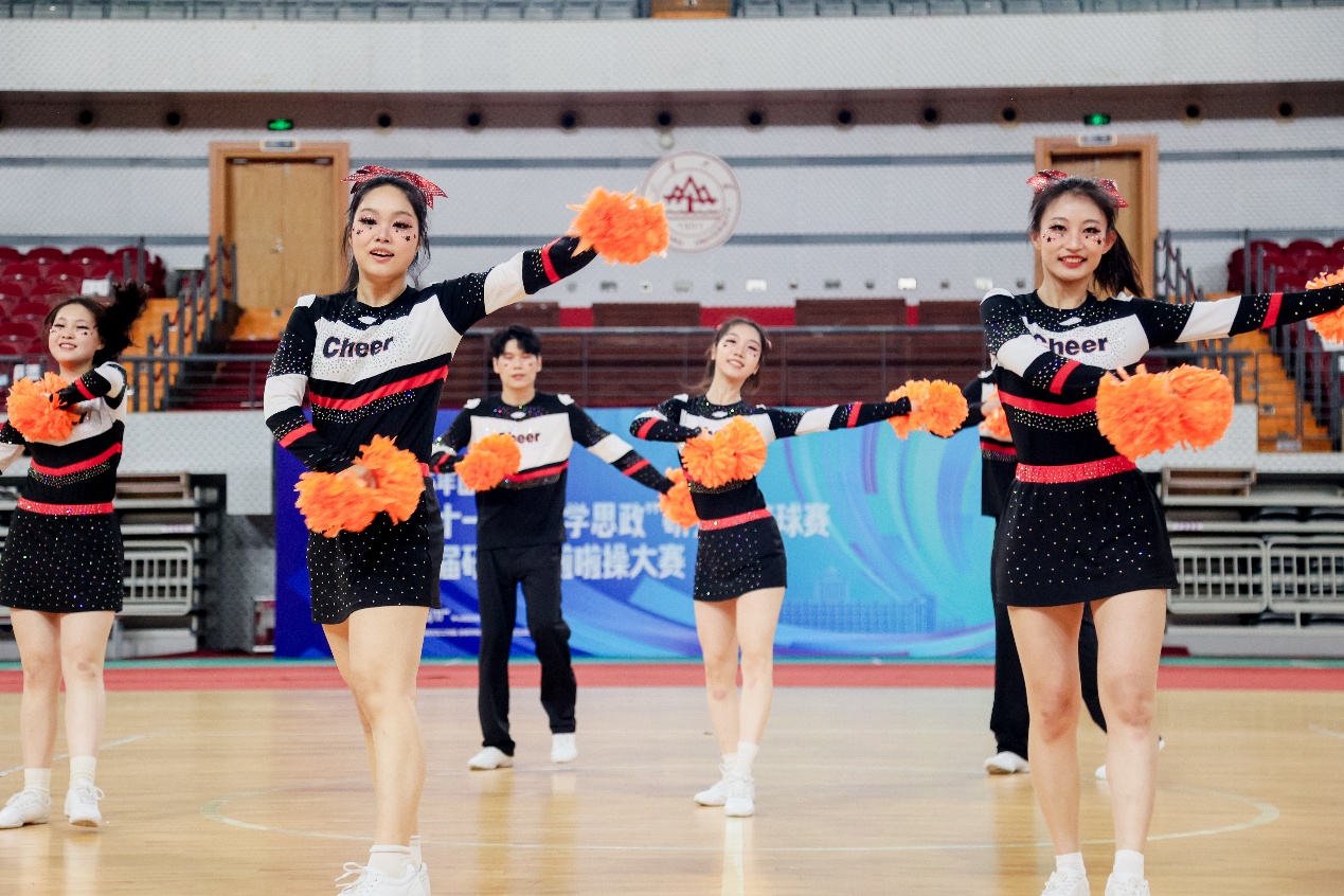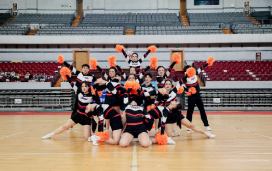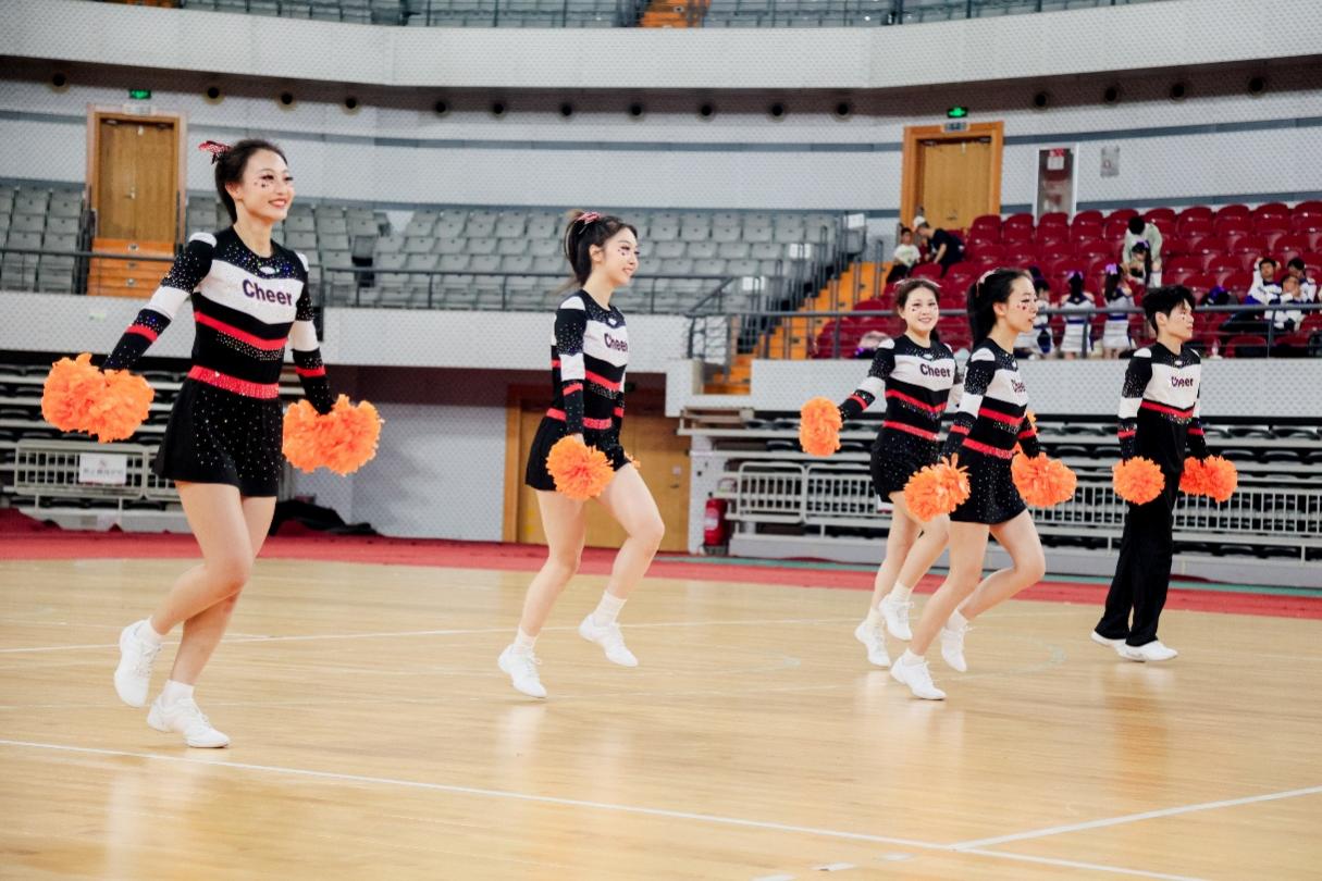 比賽當日,現(xiàn)場氣氛熱烈非凡。電氣工程學院啦啦操隊身著精心設計的黑白紅相間的啦啦操服,搭配鮮艷的橙色花球,為觀眾貢獻了一場精彩的視覺盛宴,盡顯電氣學子的青春朝氣與活力。