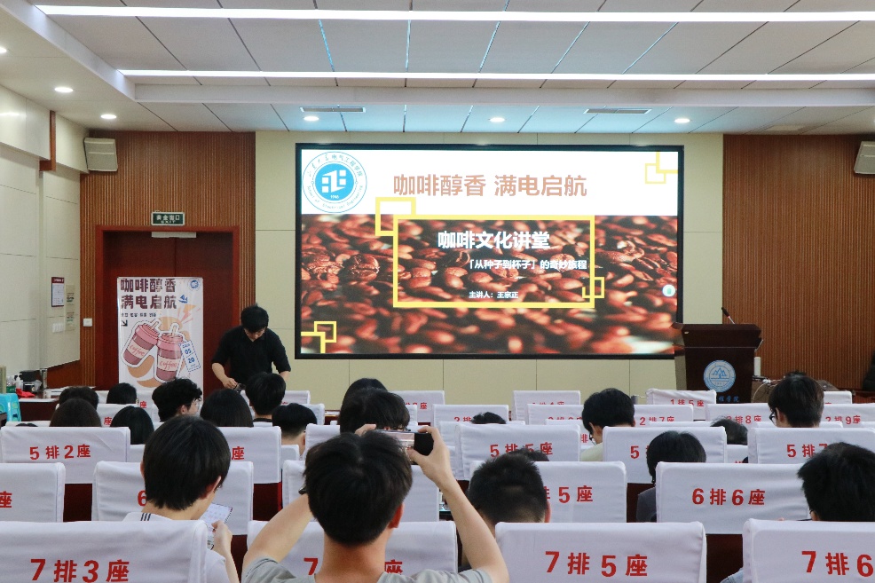 咖啡文化講堂在四樓報(bào)告廳展開,學(xué)院的“咖啡發(fā)燒友”對咖啡起源與發(fā)展歷程、全球咖啡風(fēng)味特征、校園咖啡使用指南等進(jìn)行系統(tǒng)講解,并結(jié)合咖啡因提神原理趣味科普,讓師生在輕松氛圍中解鎖咖啡文化內(nèi)涵。互動問答環(huán)節(jié),圍繞“電氣知識與咖啡工藝”話題,參與者積極討論,贏取電院限定咖啡杯等文創(chuàng)產(chǎn)品。