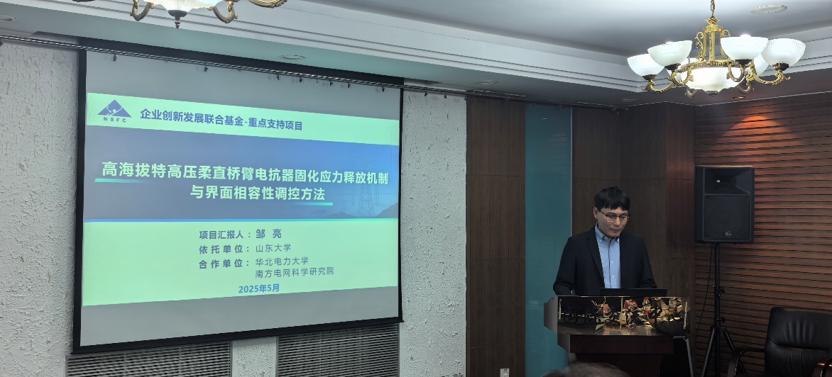 2025年5月10日,國家自然科學(xué)基金企業(yè)創(chuàng)新發(fā)展聯(lián)合基金“高海拔特高壓柔直橋臂電抗器固化應(yīng)力釋放機(jī)制與界面相容性調(diào)控方法”項(xiàng)目啟動(dòng)會(huì)在北京市召開,本次會(huì)議由山東大學(xué)和華北電力大學(xué)共同主辦。華北電力大學(xué)電氣與電子工程學(xué)院副院長齊磊、浙江大學(xué)電氣工程學(xué)院副院長李虹、北京航空航天大學(xué)自動(dòng)化科學(xué)與電氣工程學(xué)院院長助理丁曉峰等來自全國多所高校、企業(yè)以及項(xiàng)目合作單位南方電網(wǎng)科學(xué)研究院的專家學(xué)者參加了本次會(huì)議,會(huì)議由山東大學(xué)電氣工程學(xué)院副院長葉華主持,項(xiàng)目負(fù)責(zé)人鄒亮教授及項(xiàng)目組成員一并參加。