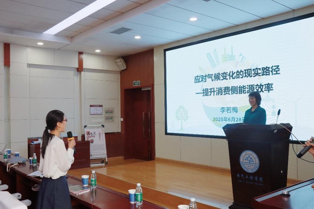 李若梅秘書(shū)長(zhǎng)帶來(lái)題為《應(yīng)對(duì)氣候變化的現(xiàn)實(shí)路徑—提升消費(fèi)側(cè)能源效率》的學(xué)術(shù)報(bào)告。