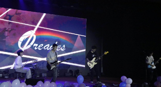 陳宇飛、白奇軒、楊嘉祺、隋鎮(zhèn)澤、邱少杰的搖滾作品燃動(dòng)全場,飽滿有力的樂器編排搭配充滿張力的演唱,瞬間點(diǎn)燃大家的熱情。幾位演出人員與觀眾積極呼應(yīng),點(diǎn)燃了全場的熱情,也照亮了新生們滾燙的夢想。