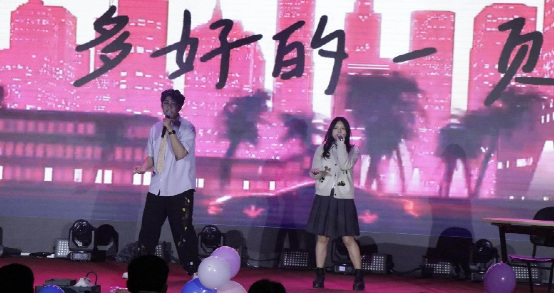 《一點(diǎn)》的歌舞是跳脫的輕快。崔朝正、張旭穎的歌舞表演清甜又明快,兩人的動(dòng)作與歌聲配合得默契十足。舞臺(tái)上滿是青春的青澀與心動(dòng),每一個(gè)細(xì)節(jié)都貼合青春主題,盡顯新生群體的活力與朝氣。