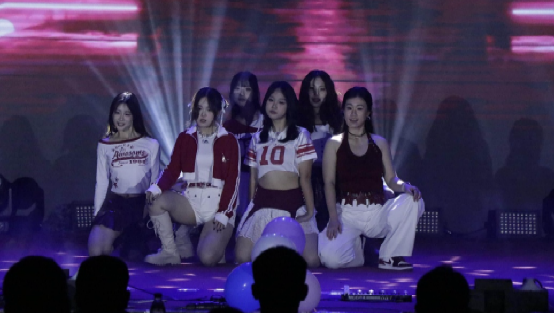 《Girls will be girls》的舞蹈又把氛圍點(diǎn)熱了。孔玲鈺,巨曈,張旭穎,徐一晗,董雯晶踩著鼓點(diǎn)抬手環(huán)顧,眼里的亮比舞臺(tái)燈還晃——青春就該是這樣,鮮活、熱烈,傳遞出積極向上的青春態(tài)度。