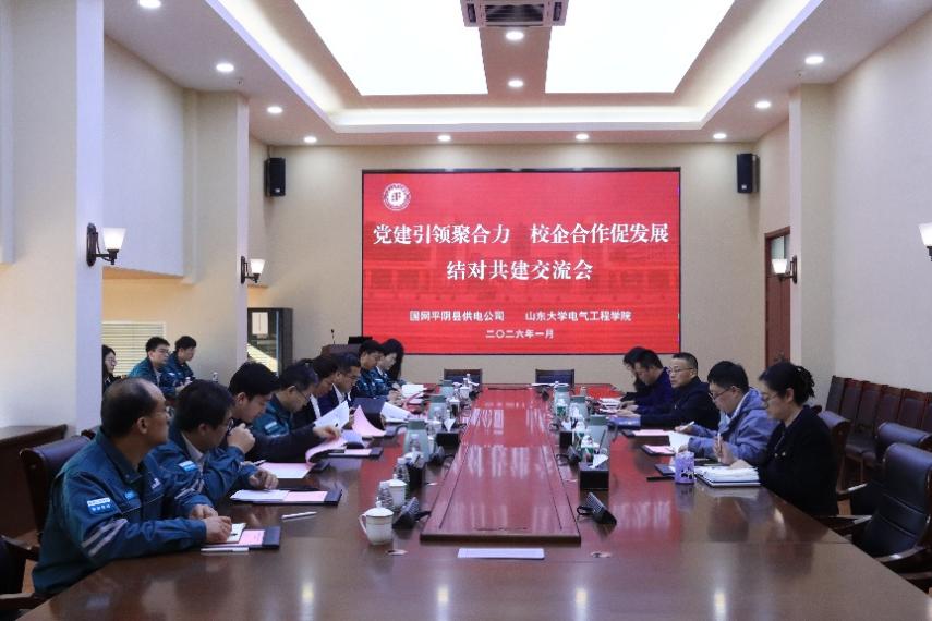 為探索基層黨建工作創(chuàng)新路徑,充分發(fā)揮黨建引領(lǐng)核心作用,1月22日下午,山東大學(xué)電氣工程學(xué)院與國(guó)網(wǎng)平陰縣供電公司開展黨建共建活動(dòng),并簽訂黨建聯(lián)建協(xié)議。國(guó)網(wǎng)平陰縣供電公司總經(jīng)理刁守斌、黨委書記馬文,電氣工程學(xué)院黨委書記殷錄民、黨委副書記宋思利與王海華、副院長(zhǎng)孫媛媛參加活動(dòng)。