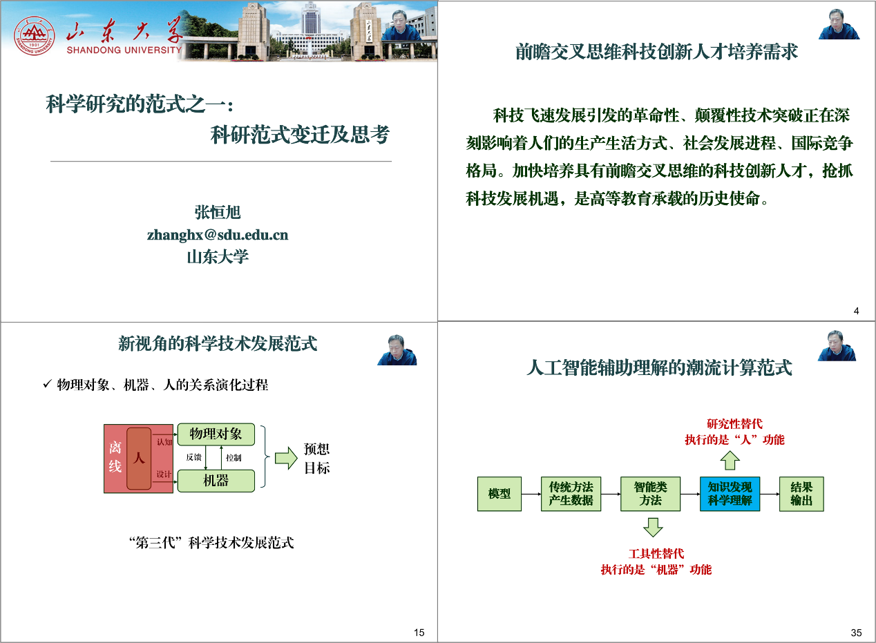 第一講“科研范式變遷及思考”于2022年12月29日舉行,由張恒旭老師主講,介紹什么是科學范式、科學范式的變革,特別就人工智能技術對科學研究范式的影響進行了深入剖析,系統(tǒng)分析了AlphaGo對迭代收斂問題的突破、AlphaFold對結構生物學研究范式的變革、AlphaTensor發(fā)現(xiàn)五十年來最高效的矩陣乘法,以及chatGPT內(nèi)容生成技術對傳統(tǒng)搜索技術的顛覆等近幾年人工智能領域的進展,分析了電力系統(tǒng)分析領域科研范式隨人工智能技術的發(fā)展將發(fā)生大的變革,建議大家要注重科學哲學和科學方法論的學習,奠定變革式創(chuàng)新的科學素養(yǎng)。