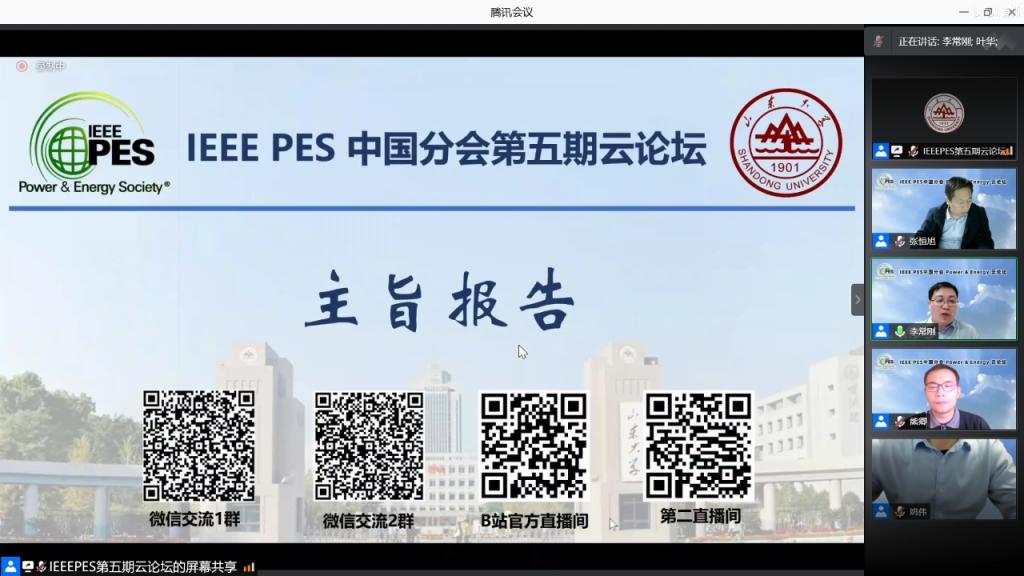 2021年3月28日,由IEEE PES中國(guó)分會(huì)主辦,IEEE PES濟(jì)南分會(huì)、電網(wǎng)智能化調(diào)度與控制教育重點(diǎn)實(shí)驗(yàn)室(山東大學(xué))承辦,IEEE PES電力系統(tǒng)動(dòng)態(tài)技術(shù)委員會(huì)(中國(guó))協(xié)辦的IEEE PES中國(guó)分會(huì)“Power & Energy云論壇”——新形態(tài)電力系統(tǒng)安全穩(wěn)定專(zhuān)題論壇圓滿(mǎn)召開(kāi)。論壇主題圍繞“新形態(tài)電力系統(tǒng)安全穩(wěn)定”展開(kāi),旨在促進(jìn)電力與能源領(lǐng)域?qū)<覍W(xué)者對(duì)當(dāng)下熱點(diǎn)問(wèn)題的交流,分享新形態(tài)電力系統(tǒng)安全穩(wěn)定領(lǐng)域的研究成果。