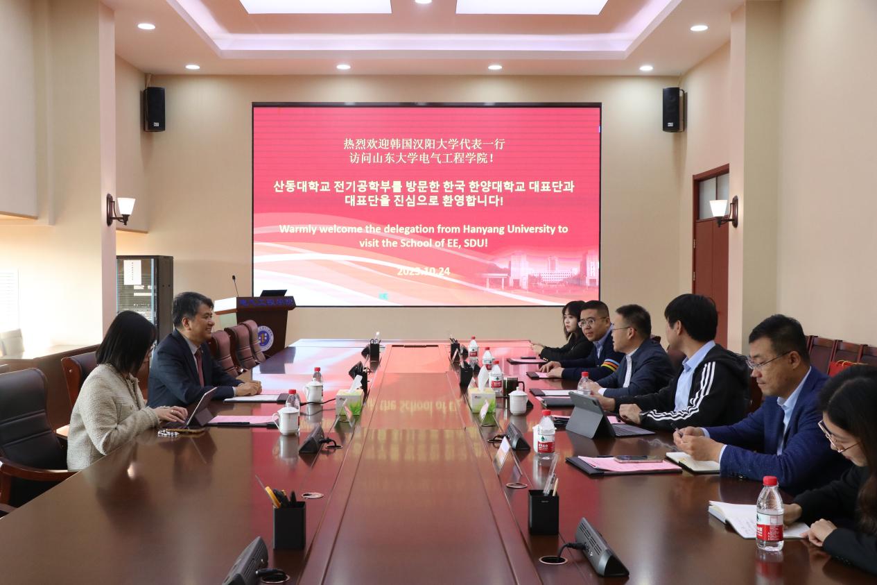 2023年10月24日上午,韓國(guó)漢陽(yáng)大學(xué)中國(guó)代表處首席代表金達(dá)鎬Dalho Kim,高校項(xiàng)目負(fù)責(zé)人陳諾亞到訪電氣工程學(xué)院。學(xué)院黨委書(shū)記殷錄民、副院長(zhǎng)趙浩然、趙文良教授、何東欣副教授、國(guó)際交流專員吳珂,學(xué)校國(guó)際事務(wù)部項(xiàng)目官員王巖參加座談。
