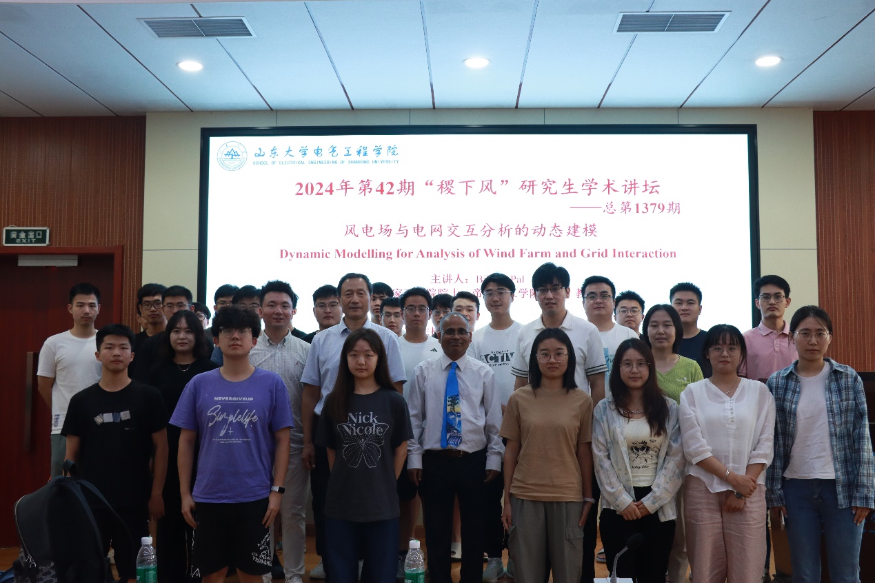 8月27日,由山東大學研究生院、黨委研究生工作部主辦,電氣工程學院承辦的2024年第42期(總第1379期)“稷下風”研究生學術講壇在千佛山校區(qū)電力樓四樓報告廳舉行。本期講壇邀請到帝國理工學院教授、英國皇家工程院院士(FREng)Bikash Pal,講座的主題為“風電場與電網(wǎng)交互分析的動態(tài)建模(Dynamic Modelling for Analysis of Wind Farm and Grid Interaction)”。講壇由郭一飛教授主持,高厚磊教授、金朝陽副教授、國際交流專員吳珂出席本次活動。