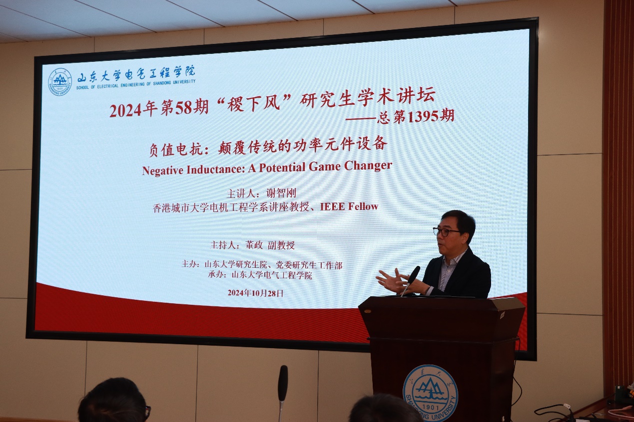 10月28日,由山東大學(xué)研究生院、黨委研究生工作部主辦,電氣工程學(xué)院承辦的2024年第58期(總第1395期)“稷下風(fēng)”研究生學(xué)術(shù)講壇在千佛山校區(qū)電力樓四樓報(bào)告廳舉行。本期講壇邀請到香港城市大學(xué)謝智剛教授主講,講座的主題為“負(fù)值電抗:顛覆傳統(tǒng)的功率元件設(shè)備(Negative Inductance: A Potential Game Changer)”。講壇由董政副教授主持。