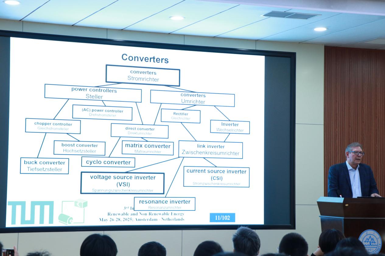 Ralph Kennel教授帶來了關(guān)于電力電子在各領(lǐng)域應(yīng)用的精彩報告。Kennel教授首先簡單介紹了電力電子的基礎(chǔ),即通過電力半導(dǎo)體器件實現(xiàn)電氣物理量(電壓,電流,功率)的高效轉(zhuǎn)換,應(yīng)用于升降壓、頻率變換、干擾補償以及設(shè)備控制等場景。之后Kennel教授重點介紹了電流源型逆變器(CSI),并指出某文獻中關(guān)于CSI動態(tài)性不如電壓源型逆變器(VSI)的說法是錯誤的,CSI 輸出電壓能實現(xiàn)與 VSI 輸出電流相同的動態(tài)控制,但CSI與電機連接需電容解耦,且多個CSI在同一直流鏈路應(yīng)采用串聯(lián)連接。Kennel教授通過PWM控制CSI實驗波形的示例,展示了其控制效果。