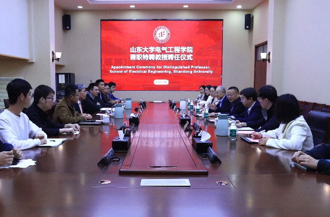 11月5日下午,山東大學(xué)電氣工程學(xué)院舉辦金喆煥兼職特聘教授聘任儀式。學(xué)院黨委書記殷錄民、院長丁磊參加儀式,并圍繞學(xué)術(shù)研究深化、國際交流拓展等議題展開深度交流探討。