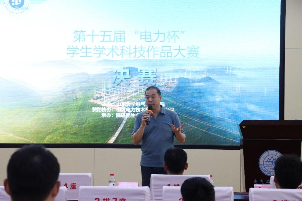 宋濟平作總結(jié)致辭。他首先對山大電力15年來對“電力杯”的支持表示感謝。他指出,近年來“電力杯”自由命題作品不斷適應(yīng)青年項目落地及國家科技發(fā)展應(yīng)用需求。“電力杯”大賽的指定命題具有一定的前瞻意義,鼓勵同學(xué)們深挖題目內(nèi)涵,契合國家應(yīng)用需要。