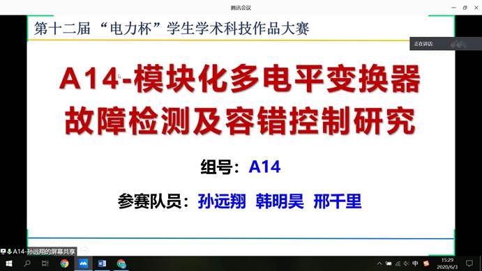 6月3日下午兩點(diǎn),由電氣工程學(xué)院主辦、院研究生會(huì)承辦、山大電力技術(shù)有限公司贊助協(xié)辦的第十二屆“電力杯”學(xué)生學(xué)術(shù)科創(chuàng)作品大賽決賽于騰訊會(huì)議平臺(tái)舉行。本次大賽決賽階段的評(píng)審老師有:山大電力技術(shù)有限公司研發(fā)中心副主任杜濤,學(xué)院實(shí)驗(yàn)中心副主任王雷老師,電力電子與電力傳動(dòng)研究所所長王玉斌老師,電力電子與電力傳動(dòng)研究所副所長王輝老師,電力系統(tǒng)研究所李常剛老師,電工理論與新技術(shù)研究所仲慧老師。學(xué)院黨委副書記宋思利出席決賽并致辭。