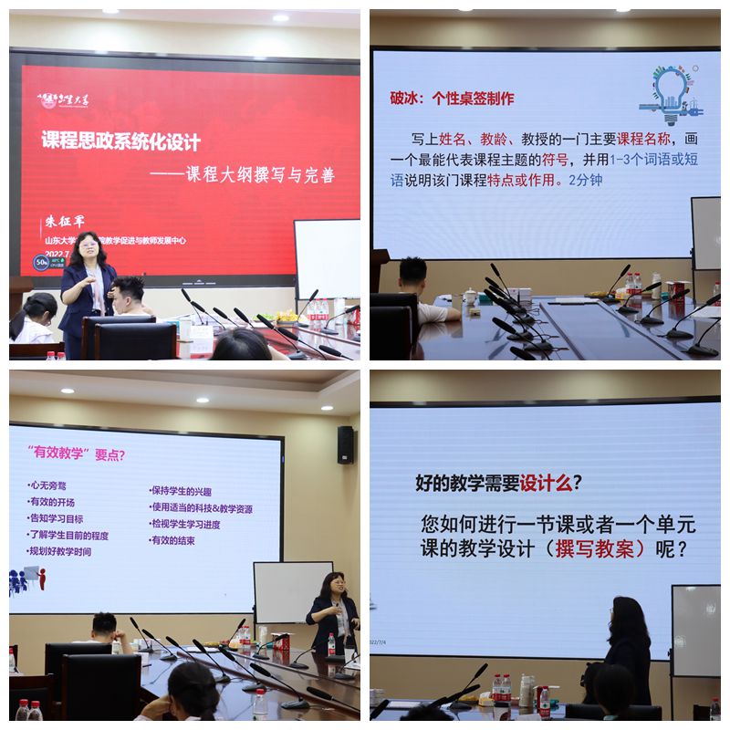 朱征軍就課程思政教學設計與實施工作坊——BOPPPS教案的撰寫和改進、課程思政系統(tǒng)化設計——課程大綱的撰寫和完善向各位教師分享方法和感受,并與各位教師開展積極互動及討論。