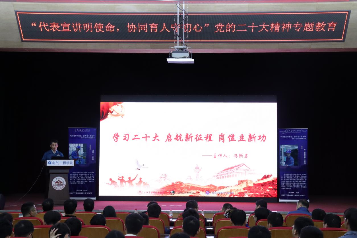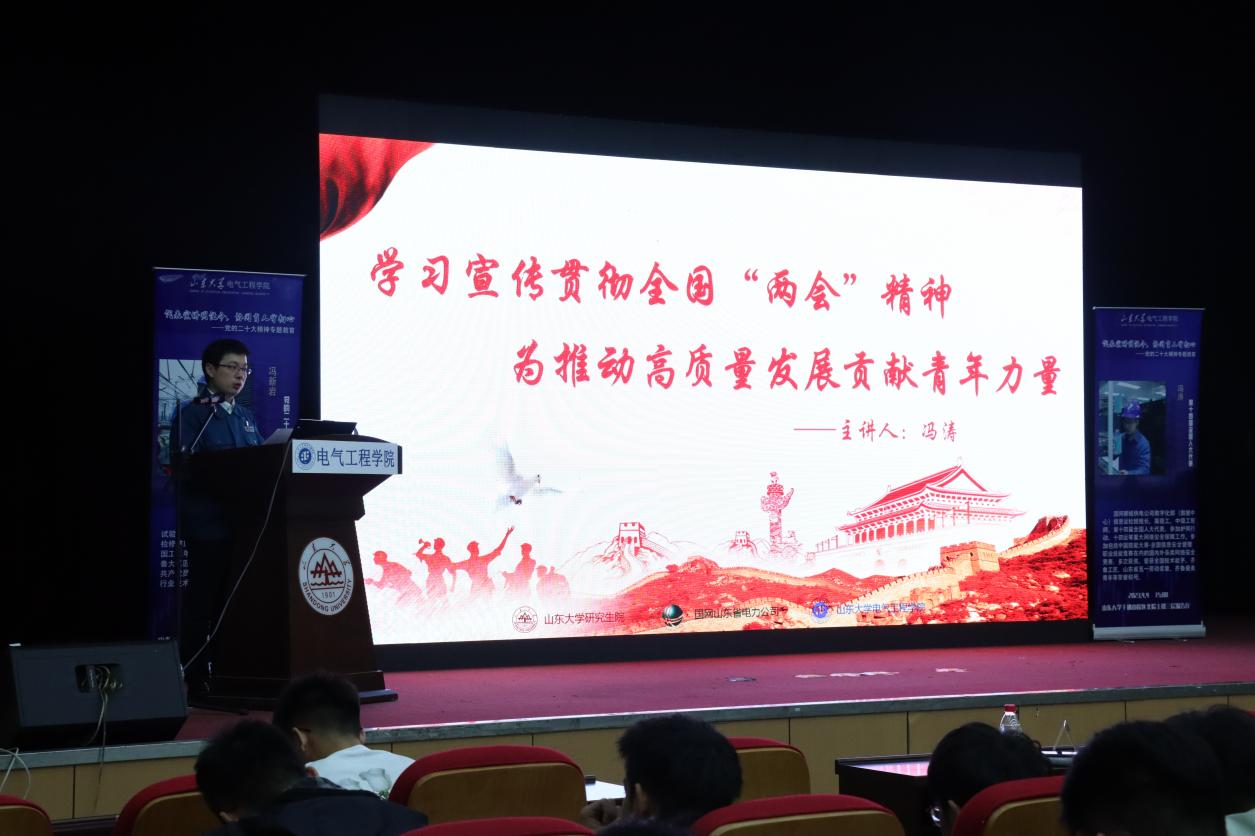 為深入學(xué)習(xí)宣傳貫徹黨的二十大精神,引領(lǐng)電氣學(xué)子提高思想政治覺悟,堅定理想信念,4月4日,由山東大學(xué)研究生院和黨委研究生工作部主辦、電氣工程學(xué)院與國網(wǎng)山東省電力公司承辦的山東大學(xué)研究生“導(dǎo)學(xué)思政下午茶”之“代表宣講明使命,協(xié)同育人守初心”黨的二十大精神專題教育順利召開。