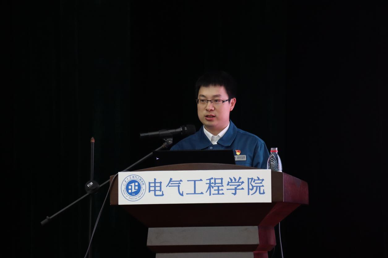 馮濤作題為“學(xué)習(xí)宣傳貫徹全國‘兩會’精神,為推動高質(zhì)量發(fā)展貢獻(xiàn)青年力量”的主題報告,詳細(xì)講解第十四屆全國人民代表大會基本情況、參會感受與個人成長經(jīng)歷。他總結(jié)了參會的兩點(diǎn)主要感悟,一是“全國人民代表大會制度是中國式民主的生動實踐”,會議代表廣泛遍及全國各民族,各行業(yè),也延伸到一線各員工,廣泛代表了人民群眾的心聲。二是人大代表要全力做好人民群眾的服務(wù)人,“一份份沉甸甸的議案體現(xiàn)了人大代表心懷國之大者,主動服務(wù)大局,回應(yīng)民生關(guān)切的使命擔(dān)當(dāng)”。在個人成長經(jīng)歷中,馮濤用“一份工作、一場比賽、一個成果”進(jìn)行總結(jié),他說在工作中不能畏難,要善于思考,辦法總比困難多,要抓住一切機(jī)會,好好準(zhǔn)備,腳踏實地。最后,馮濤對廣大電氣學(xué)子未來為電力行業(yè)發(fā)展作出貢獻(xiàn)提出希冀。