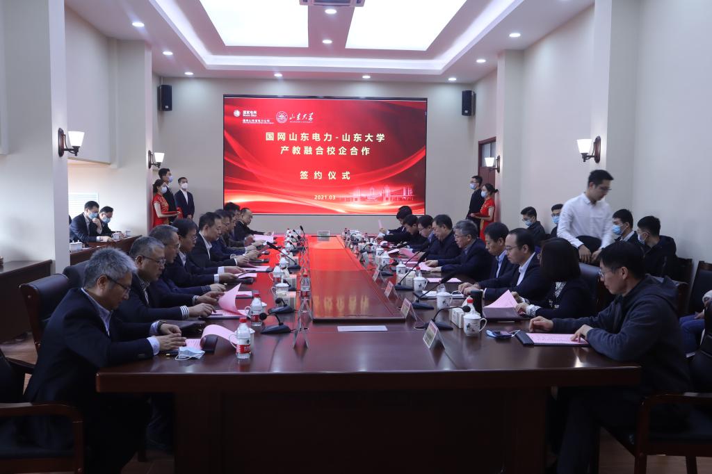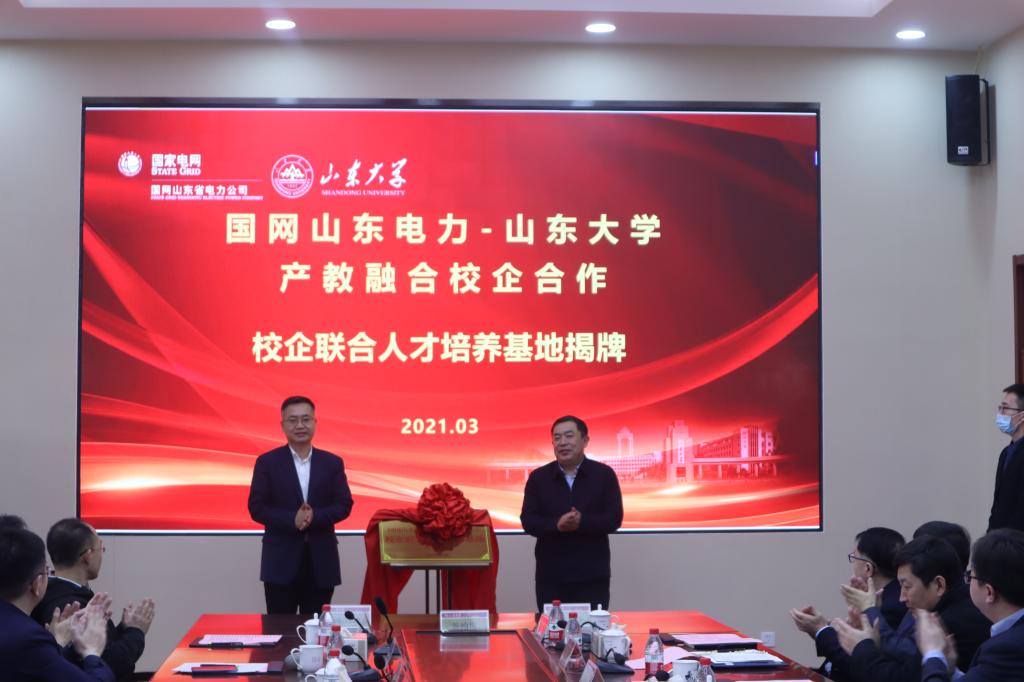 2021年3月19日上午,“國網(wǎng)山東電力-山東大學(xué)”產(chǎn)教融合校企合作簽約及校企聯(lián)合人才培養(yǎng)基地、聯(lián)合共建實驗室揭牌儀式在山東大學(xué)千佛山校區(qū)電力實驗樓524會議室舉行。山東大學(xué)副校長、中國工程院院士李術(shù)才教授,國網(wǎng)山東電力公司總工程師、黨委委員李榮出席儀式并講話。山東大學(xué)電氣工程學(xué)院黨委書記劉相宜主持儀式。