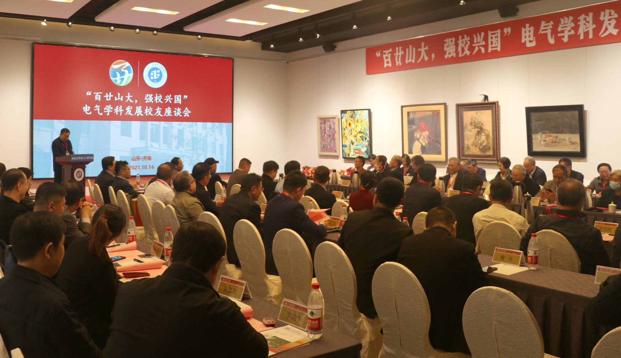 為慶祝山東大學(xué)建校120周年暨電氣工程學(xué)科創(chuàng)辦75周年,電氣工程學(xué)院于2021年10月14日在學(xué)府大酒店,以“暢談師生情誼,共謀學(xué)科發(fā)展”為主題,隆重舉辦“百廿山大,強(qiáng)校興國”電氣學(xué)科發(fā)展校友座談會。會議由學(xué)院黨委書記劉相宜主持并致辭,常務(wù)副院長張恒旭匯報(bào)學(xué)院發(fā)展情況。全體返校校友,部分學(xué)院老領(lǐng)導(dǎo)、老教師,合作單位特邀嘉賓,部分教師及學(xué)生代表等近百人參加座談會。會前,華能國際電力股份有限公司、國網(wǎng)山東省公司等也給學(xué)院發(fā)來了賀信賀電。
