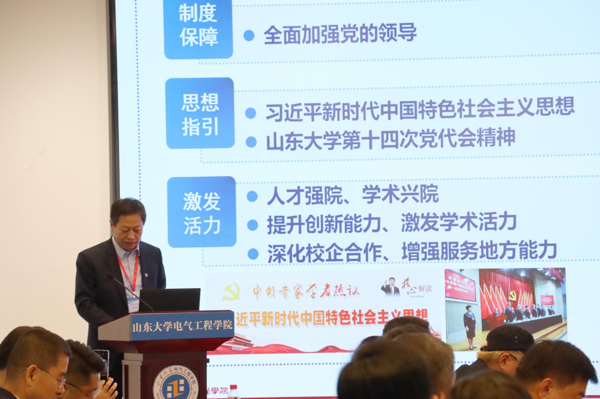 張恒旭以“守正創(chuàng)新、卓越求實(shí)”為主題,向校友們匯報(bào)了學(xué)院情況與未來學(xué)科發(fā)展規(guī)劃。他表示,在新的歷史發(fā)展階段,學(xué)院將堅(jiān)持“一個(gè)專注、兩個(gè)重點(diǎn)、三個(gè)協(xié)同、四個(gè)增強(qiáng)”的發(fā)展理念,面向國家重大需求、面向國民經(jīng)濟(jì)主戰(zhàn)場,將論文寫在祖國大地上,著力構(gòu)建山大特色、世界一流電氣工程的辦學(xué)格局。