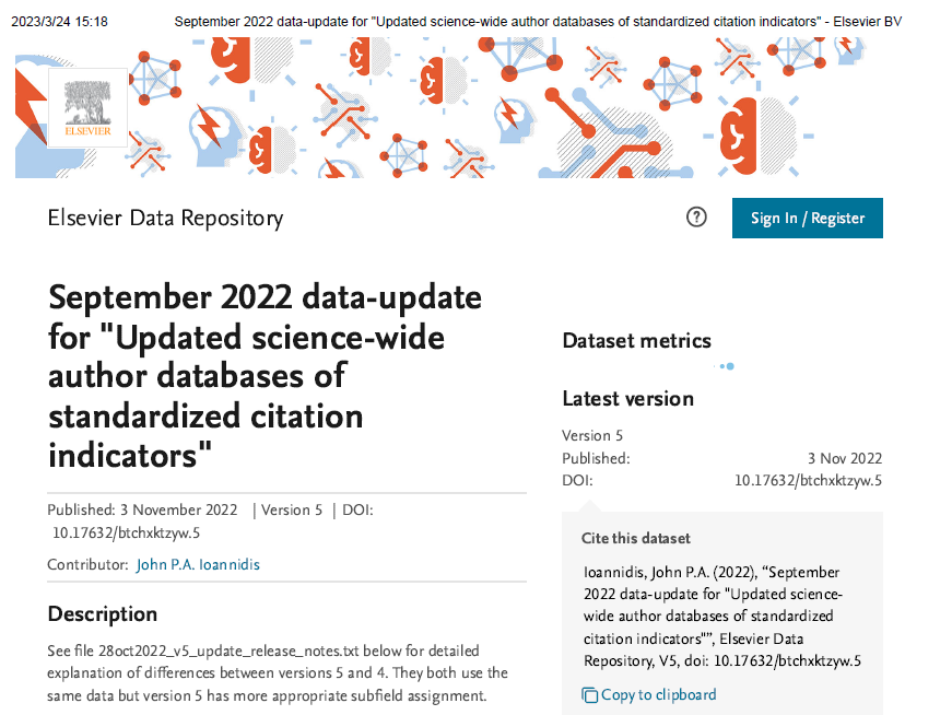 該榜單由斯坦福大學John P. A. Ioannidis教授團隊與Elsevier旗下Mendeley Data發(fā)布。榜單以Scopus數據庫為依據,基于引用次數、H因子、HM因子等綜合指標,從千萬名科學家中遴選出世界排名前2%的科學家,分為22個領域和176個細分子領域。