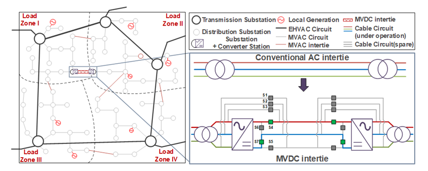 科研創(chuàng)新:提出了完整的城市電網(wǎng)交流線路直流改造方案及控制策略,為未來(lái)城市能源融合協(xié)同控制提供可行方案。