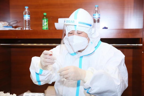 與會(huì)者簽到及核酸檢測(cè)現(xiàn)場(chǎng)