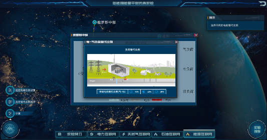 (4)東北亞多能源能量平衡仿真:通過多能源能量平衡仿真實驗,了解各地區(qū)能源需求的差異性,理解能源之間的相互轉(zhuǎn)化關系及其重要意義,熟悉環(huán)境、經(jīng)濟等因素與能量平衡的相關性,掌握能源互聯(lián)網(wǎng)能量平衡的分析方法。實驗中,學生可以探究各國不同能源轉(zhuǎn)換比例下的能量消費模式,及相應的多能源互聯(lián)系統(tǒng)能量平衡方式,主動探索與理解能源替代的意義與作用(圖7)。