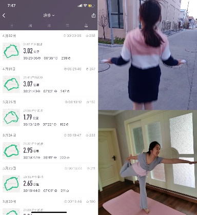 在符合防控規(guī)范的前提下,不受時(shí)間控制,不受地點(diǎn)約束,隨時(shí)隨地開展運(yùn)動(dòng)。支部成員在居家學(xué)習(xí)生活之余,積極開展運(yùn)動(dòng)打卡活動(dòng),形式多樣,效果顯著,成員在提升自身身體素質(zhì)的同時(shí),引導(dǎo)身邊更多人參與運(yùn)動(dòng),合理安排學(xué)習(xí)生活。