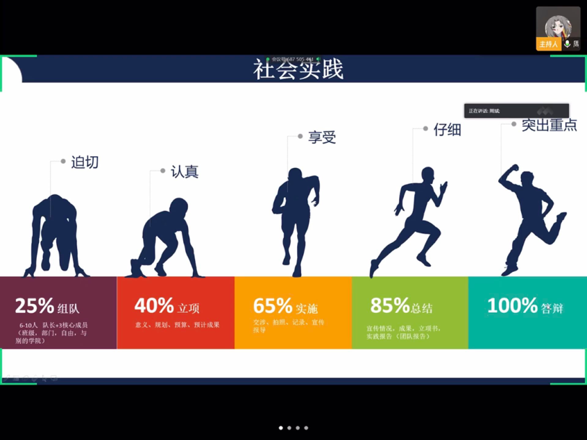 會議伊始,由社會實踐部第二負責人周斌為19級各班團支書進行講解。他通過“是什么”“怎么做”和“做什么”三個方面,為大家介紹了暑期社會實踐的內(nèi)容和有關(guān)注意事項,并對過程中可能出現(xiàn)的問題進行了講解,同學(xué)們都對社會實踐有了初步的認識。隨后,社實部李明洋對社會實踐的各個環(huán)節(jié)進行了更細化的說明,并提出了很多關(guān)于選題立項和團隊報告撰寫的實用小建議。同時,他通過介紹往年的優(yōu)秀立項,啟發(fā)了大家對于選題的想法。最后,社實部部長劉軒總結(jié)了兩位同學(xué)的發(fā)言,指出了這次疫情專項社會實踐與暑期社會實踐的不同之處以及一些注意事項,并回答了團支書們提出的問題。