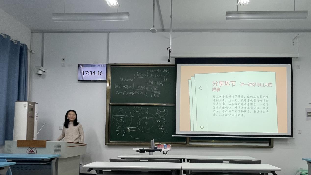 活動(dòng)伊始,袁琦通過(guò)圖文展播帶領(lǐng)同學(xué)們系統(tǒng)回顧山東大學(xué)從晚清自強(qiáng)學(xué)堂到新時(shí)代的發(fā)展歷程,重點(diǎn)解讀“學(xué)無(wú)止境,氣有浩然”的校訓(xùn)內(nèi)涵。同學(xué)們集體觀看校慶宣傳片《有浩然》,在光影中感受山大百年底蘊(yùn),并結(jié)合自身經(jīng)歷分享入學(xué)以來(lái)的成長(zhǎng)體悟。
