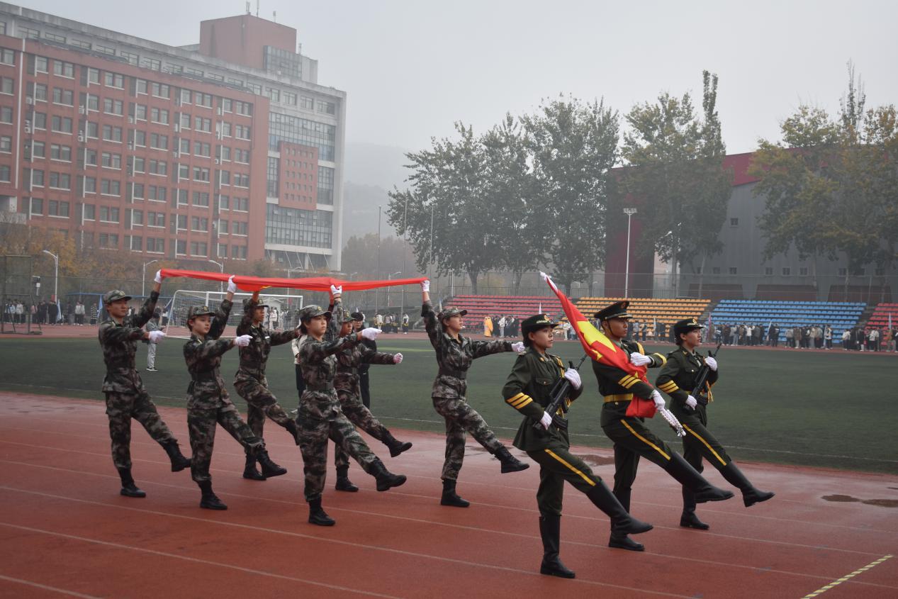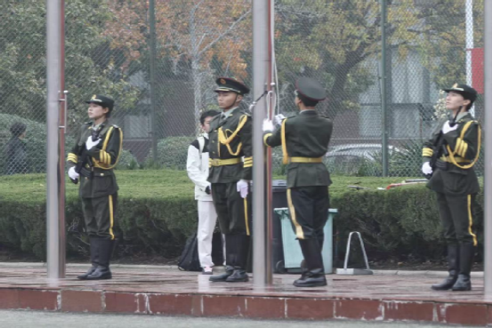 伴隨著振奮人心的《義勇軍進(jìn)行曲》,全體師生齊唱中華人民共和國(guó)國(guó)歌,向冉冉升起的五星紅旗行注目禮。