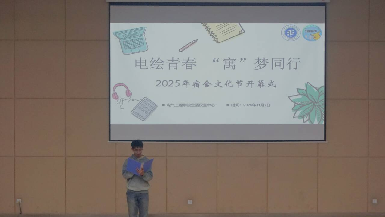 為營造積極向上的宿舍文化氛圍,搭建學(xué)生展示自我風(fēng)采的平臺(tái),11月7日,電氣工程學(xué)院舉辦2025年“電繪青春,‘寓’夢(mèng)同行”宿舍文化節(jié)開幕式。本次活動(dòng)由楊昊澎主持,2025級(jí)本科生輔導(dǎo)員楊東華、劉璇、李善勇和宿舍代表們悉數(shù)參會(huì)。