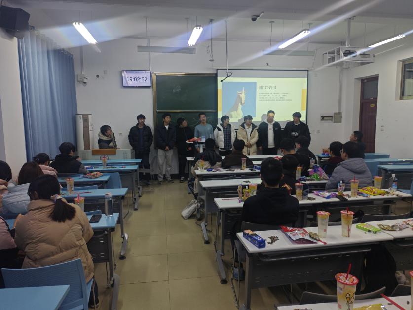 隨后,班會進入學(xué)業(yè)與班級建設(shè)交流環(huán)節(jié)。班長段正昆提醒同學(xué)們重視專業(yè)學(xué)習、積極參與校園活動,鼓勵同學(xué)們在追求個人成長的同時,也為班級爭光添彩,共同營造積極向上的班風班貌。