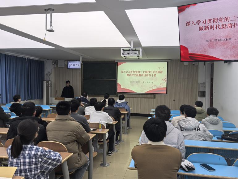在交流環(huán)節(jié),與會黨員緊密結(jié)合大課培訓(xùn)內(nèi)容、專業(yè)學(xué)習(xí)與成長實際,進(jìn)行深入交流研討,在思想交融中進(jìn)一步強(qiáng)化了使命擔(dān)當(dāng),凝聚了奮進(jìn)共識。本科生黨支部學(xué)生負(fù)責(zé)人李世超說:“作為新時代的電氣學(xué)子,我們生逢其時,重任在肩。黨的二十屆四中全會對國家治理體系和治理能力現(xiàn)代化作出新部署,對科技自立自強(qiáng)提出新要求,這為我們指明了方向。我們將以錢學(xué)森、黃旭華、薛其坤等前輩科學(xué)家為榜樣,將個人理想融入國家能源電力事業(yè)發(fā)展和科技強(qiáng)國建設(shè)的宏闊征程,在未來的崗位上勇于創(chuàng)新、甘于奉獻(xiàn)。”