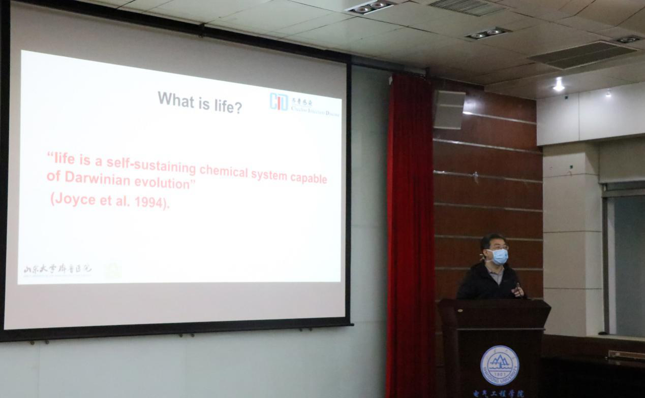 之后,山東大學齊魯醫(yī)院感染科副主任、臨床醫(yī)學院副教授王剛老師進行了新冠疫情的發(fā)病機理、傳播途徑和傳染病的基本常識、預防措施等知識的分享。王老師以“What is life?”和“人與自然”開題,介紹了病原體與人體的3種相互關系;根據(jù)新冠肺炎與SARS的對比,進一步分析其傳播性與感染特點,介紹了保持安全距離、戴口罩、防護眼睛等針對傳染病的具體防護措施;最后,王老師從更高的角度分析了這次新冠疫情給中國、給世界帶來的影響,同學們受益匪淺。
