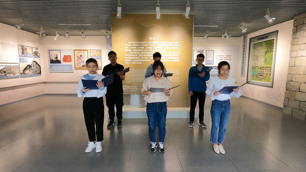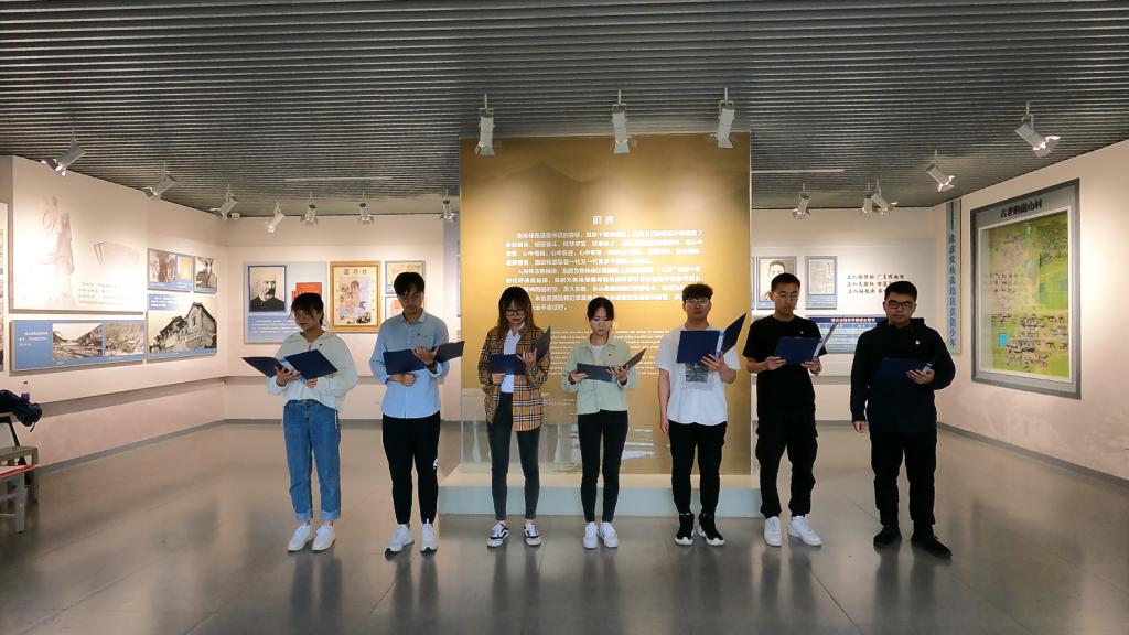 本次實踐活動由“溫征途—參觀焦裕祿紀(jì)念館”“學(xué)四史—觀看黨史學(xué)習(xí)片”“踐初心—話劇表演與詩歌朗誦”三部分組成。上午九點,隊員們準(zhǔn)時來到焦裕祿紀(jì)念館前,隨后步入展廳,認(rèn)真聽取講解員講解,觀看勤政廉政教育視頻短片,詳細(xì)察看展陳內(nèi)容。在工作人員的帶領(lǐng)下,全體成員首先了解了淄博市的悠久歷史,以及在這片土地上曾遭受日本帝國主義侵略的血淚史。隨后,在紀(jì)念館一、二展廳,隊員們參觀了“家鄉(xiāng)沃土,育英鑄魂”、“國難家仇、屢經(jīng)磨難”,焦裕祿自幼便立下“天上一顆星,地上一個丁,好男兒就要有擔(dān)當(dāng)”的志向,以及焦裕祿在被日寇押入憲兵隊后的無畏抗?fàn)帲爢T們感受到了老一輩共產(chǎn)黨人積極探索、敢于抗?fàn)幍木瘛kS后來到第三、四展廳,觀看了“櫛風(fēng)沐雨,百煉成鋼”、“工業(yè)戰(zhàn)線的標(biāo)兵”、“人民公仆,光輝榜樣”展覽,隊員們仿佛置身其中,看到那段歲月里焦裕祿帶領(lǐng)車間工人搞工業(yè)建設(shè),帶領(lǐng)蘭考人民治理“三害”,即使肝癌纏身也不忘人民,不忘本職工作,隊員們被焦裕祿同志為人民鞠躬盡瘁死而后已的精神深深打動。