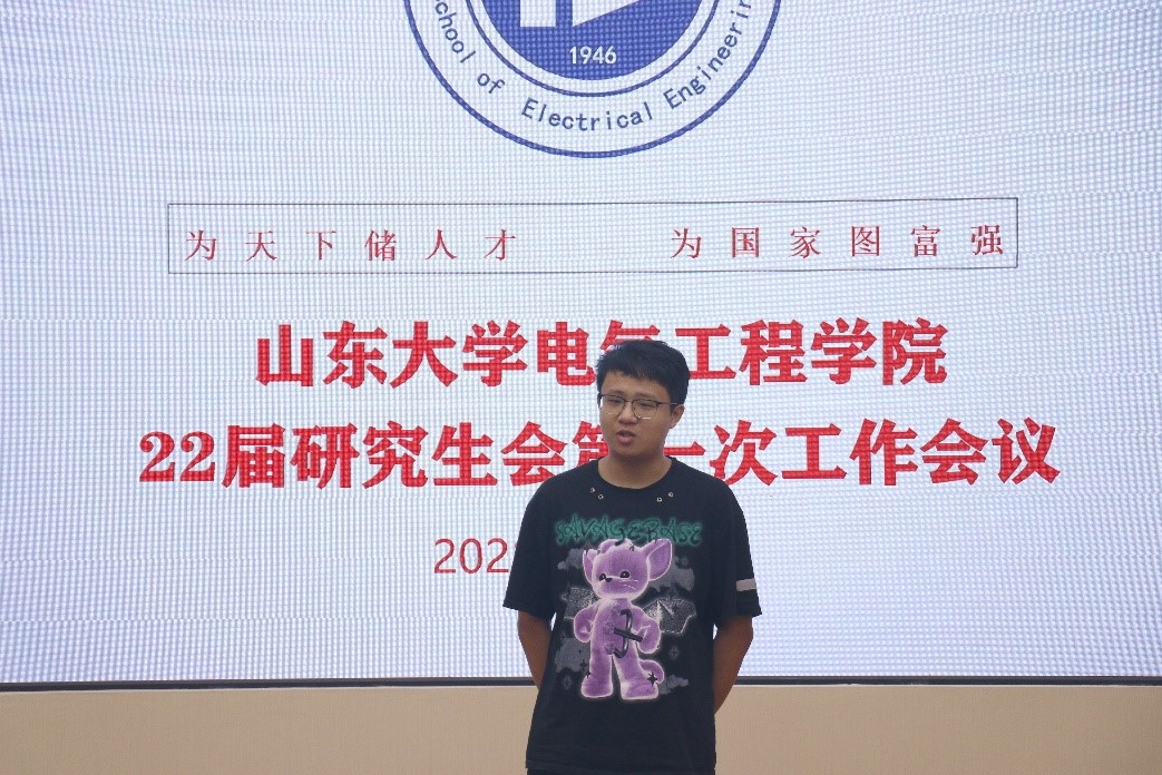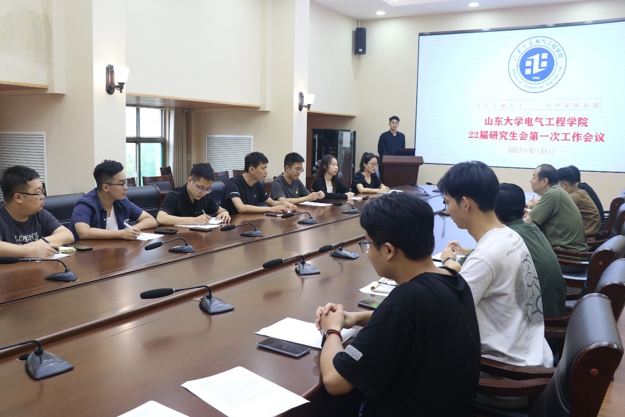 2021年8月31日下午16時,山東大學電氣工程學院22屆研究生會第一次工作會議在電力樓524會議室順利召開。本次會議由研究生會主席仲家主持,全體主席部長團成員參加,學院研究生辦公室主任宋濟平出席此次會議。會議分為回顧總結研會工作、迎新納新活動工作安排、研會成員表態(tài)發(fā)言、自由討論交流四個環(huán)節(jié)。