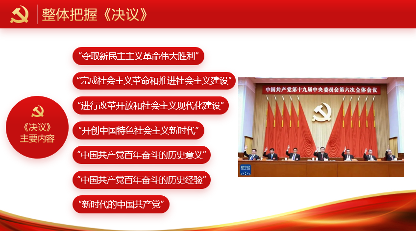 會議第二項(xiàng),陸雙慶領(lǐng)學(xué)了《決議》的主要內(nèi)容。集體學(xué)習(xí)主要分為三部分開展:梳理《決議》的整體方向、介紹了《決議》的主要學(xué)習(xí)內(nèi)容和支部黨員集中進(jìn)行學(xué)習(xí)討論。陸雙慶強(qiáng)調(diào),要整體把握《決議》,就要了解兩大主要特點(diǎn):(1)總結(jié)黨的百年奮斗重大成就和歷史經(jīng)驗(yàn);(2)突出中國特色社會主義新時代這個重點(diǎn)。在介紹《決議》的主要內(nèi)容部分, 他講到,《決議》的前四部分,將大黨百年歷史劃分為四個歷史時期,深刻闡明每個歷史時期黨的任務(wù)、取得的重大成就及其歷史意義,這幾部分結(jié)合黨史進(jìn)一步學(xué)習(xí)。在《決議》第四部分,在黨的十九大報告“八個明確”的基礎(chǔ)上,用“十個明確”對習(xí)近平新時代中國特色社會主義思想的核心內(nèi)容作了進(jìn)一步概括。在此基礎(chǔ)上,他對補(bǔ)充部分的“四個意識”、“四個自信”、“兩個維護(hù)”和新增的兩個“明確”等內(nèi)容進(jìn)行了進(jìn)一步說明。最后,支部成員共同學(xué)習(xí)了《決議》中的五大歷史意義、十條歷史經(jīng)驗(yàn)和一個偉大號召。在集中學(xué)習(xí)討論階段,支部黨員同志在集體學(xué)習(xí)后,圍繞黨的十九屆六中全會精神,結(jié)合當(dāng)下青年黨員的身份,進(jìn)行交流研討。副黨支書姜心怡表示,《決議》是一份以史為鑒、開創(chuàng)未來的綱領(lǐng)性文件,在建黨百年的重要?dú)v史時刻,決議全面總結(jié)了黨的百年奮斗重大成就和歷史經(jīng)驗(yàn),具有重大現(xiàn)實(shí)意義和深遠(yuǎn)歷史意義,作為青年黨員,我們要認(rèn)真學(xué)習(xí)好這份《決議》,將《決議》精神貫徹到自己的生活和學(xué)習(xí)中去,爭做優(yōu)秀黨員。