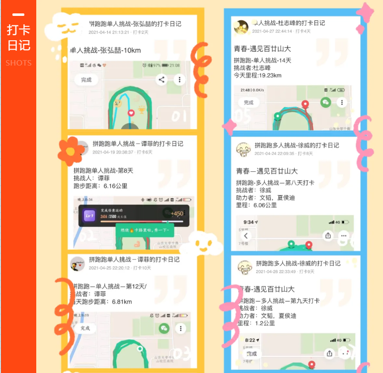 “我與山大的‘前世’今生”采用線上打卡的形式,借助“小打卡”平臺,由發(fā)起人每日發(fā)布打卡任務(wù),參與同學(xué)根據(jù)主題分享自己與山大的小故事。研會帶領(lǐng)著各位學(xué)子回顧了自己了解山大、認(rèn)識山大、學(xué)在山大的點點滴滴,了解了山大百年來的歷史沉淀,并通過自身感悟不斷激勵自己,提升自己,見證自己的成長。