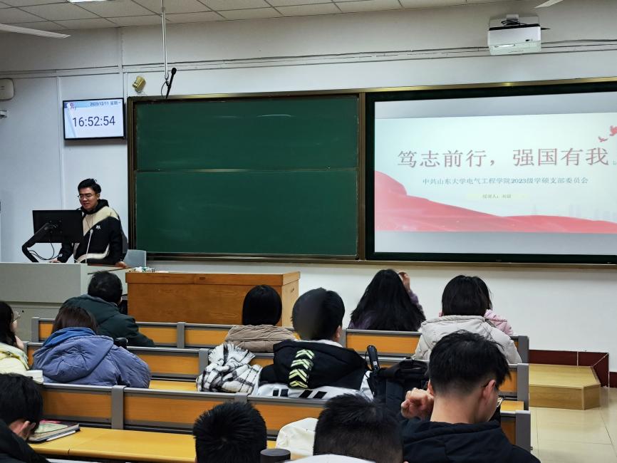 為深化黨性教育,學(xué)思踐悟習(xí)近平新時(shí)代中國(guó)特色社會(huì)主義思想,推動(dòng)思想政治教育與研究生生活緊密融合,2023年12月,山東大學(xué)電氣工程學(xué)院2023級(jí)學(xué)碩黨支部以“貫徹學(xué)思踐悟 篤志科技強(qiáng)國(guó)”為主題,開(kāi)展系列主題黨日活動(dòng)。