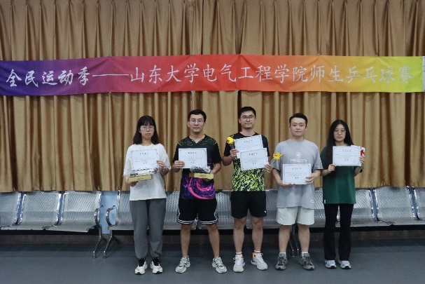 在經(jīng)過(guò)激烈的比拼角逐之后,林想獲得女單冠軍,呂東寶獲得男單冠軍,陳旭和林想獲得混雙冠軍,許天傲和呂東寶獲得男雙冠軍。賽后,乒乓球賽閉幕式暨頒獎(jiǎng)典禮在千佛山北院舜園三樓學(xué)生活動(dòng)中心舉辦,比賽圓滿落幕。