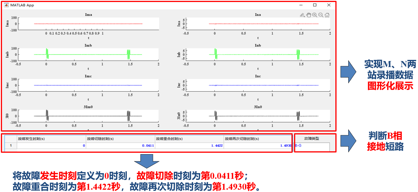 本軟件能夠讀取電力系統(tǒng)錄波裝置產(chǎn)生的Comtrade錄波文件,并實現(xiàn)模擬量波形的數(shù)據(jù)對齊,通過改進的直軸電流差動判斷算法,軟件能夠準(zhǔn)確判斷故障通道,即使在高阻故障穿越型電流情況下也能可靠動作。軟件提供了錄波數(shù)據(jù)的圖形化展示功能,使用戶能夠直觀地觀察故障波形,并準(zhǔn)確判斷故障發(fā)生、切除、重合以及再次切除的具體時刻。項目在滿足題目基本要求的基礎(chǔ)上,增加了兩項創(chuàng)新點:基于小波變換的故障自同步算法和改進直軸電流差動保護算法,顯著提升了軟件的性能和實用性。