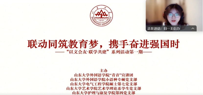 為發(fā)揮朋輩宣講優(yōu)勢,傳遞青年聲音,鞏固寒假期間理論學(xué)習(xí)成果,融匯不同學(xué)科的多維視角,助力培養(yǎng)高層次復(fù)合型人才。2025年1月25日晚,外國語學(xué)院“青音”宣講團、外國語學(xué)院小語種專碩黨支部、電氣工程學(xué)院碩士第七黨支部、藝術(shù)學(xué)院藝術(shù)學(xué)理論系學(xué)生黨支部、護理與康復(fù)學(xué)院第四黨支部,以“聯(lián)動同筑教育夢,攜手奮進強國時”為主題聯(lián)合舉辦“以文會友·聯(lián)學(xué)共建”理論宣講活動,來自各支部的一百五十余名黨員參加活動。