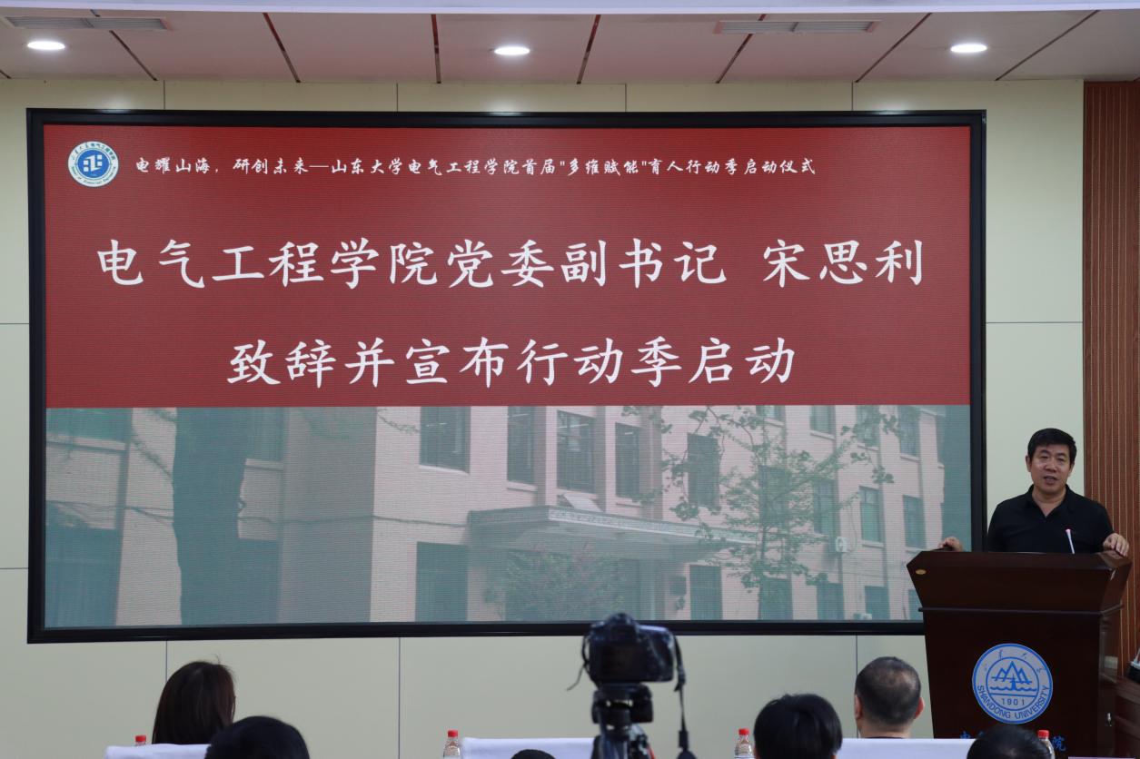 2025年5月16日上午,山東大學(xué)電氣工程學(xué)院首屆“多維賦能”育人行動(dòng)季啟動(dòng)儀式在千佛山校區(qū)電力樓四樓報(bào)告廳隆重舉行。山東大學(xué)電氣工程學(xué)院黨委副書記宋思利、研究生思政辦公室主任宋濟(jì)平、研究生輔導(dǎo)員唐曉曼出席啟動(dòng)儀式,活動(dòng)由碩士研究生馬諾主持。