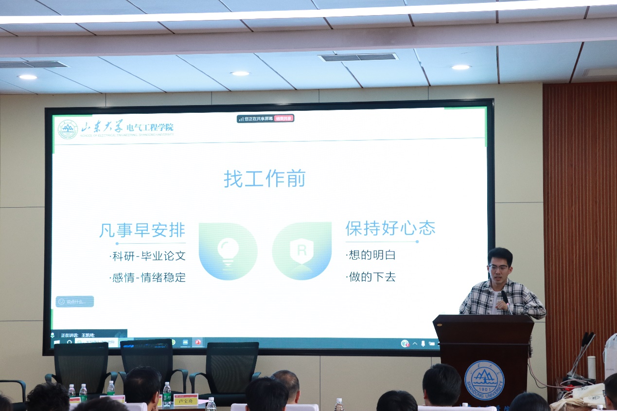 講座后半程以“經(jīng)驗(yàn)職達(dá)未來”為核心,優(yōu)秀碩士畢業(yè)生們傾囊相授求職經(jīng)驗(yàn)與工作心得。盧寶琦詳細(xì)解讀了國網(wǎng)濟(jì)南供電公司的招聘流程、崗位需求,分享了面試技巧與職場適應(yīng)經(jīng)驗(yàn),建議通過暑期實(shí)踐積累面試素材;宋福靖從職業(yè)成長角度,講述了在工作中的能力提升與發(fā)展機(jī)遇,建議求職時多渠道了解信息、多方位嘗試;楊東華結(jié)合高校工作特點(diǎn),聚焦事業(yè)編考試與輔導(dǎo)員崗位,為同學(xué)們分享了備考策略與崗位能力要求。