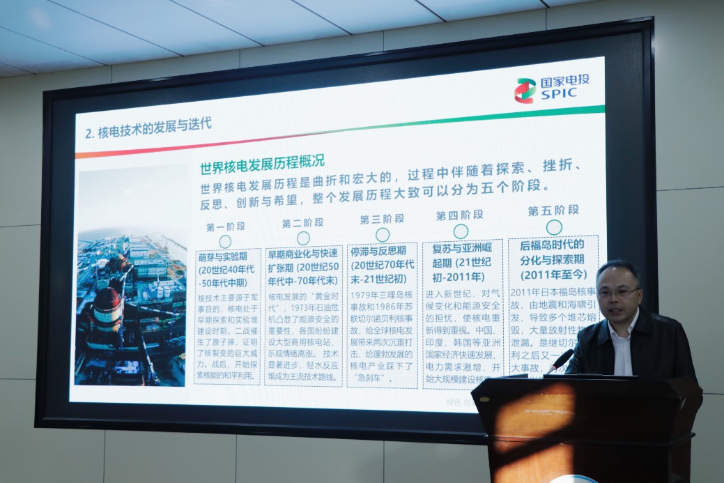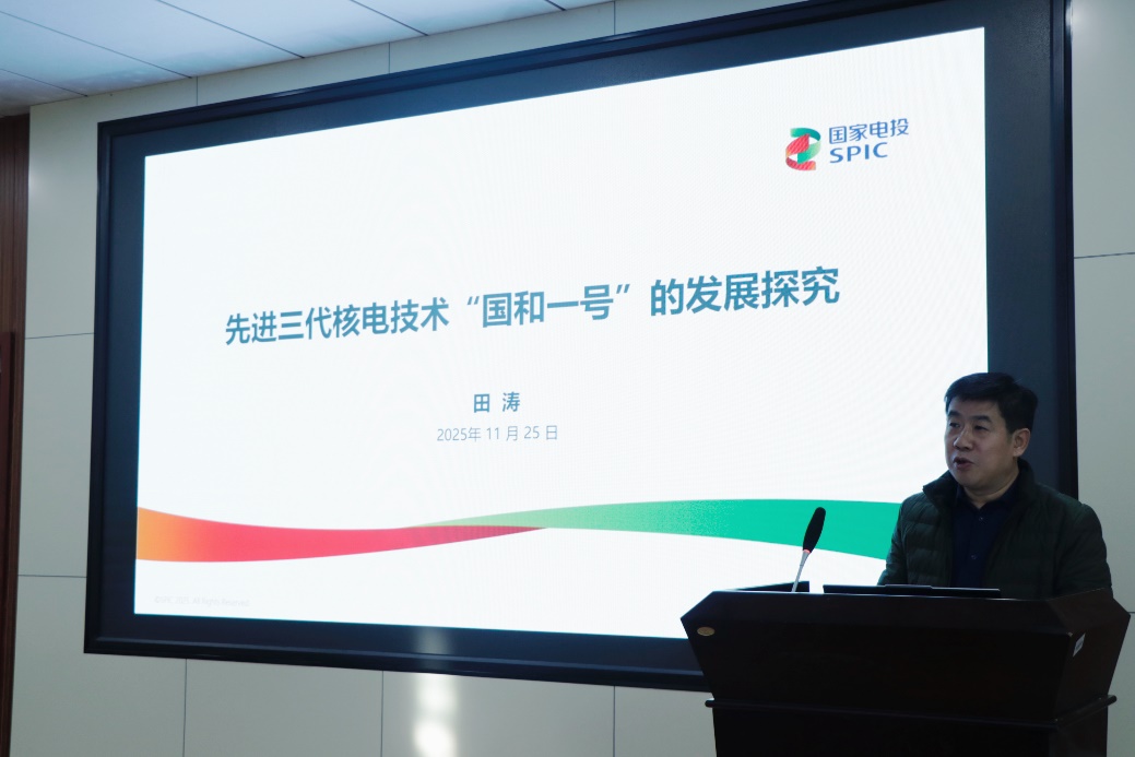 接下來,田濤總經(jīng)理帶來題為《先進(jìn)三代核電技術(shù)“國和一號”的發(fā)展探究》的專題報告。報告從世界核電發(fā)展脈絡(luò)切入,系統(tǒng)梳理了核電技術(shù)從實(shí)驗(yàn)探索到三代革新的演進(jìn)歷程,重點(diǎn)聚焦中國三代核電技術(shù)“國和一號”的自主創(chuàng)新與實(shí)踐,深入剖析了AP1000技術(shù)的引進(jìn)消化吸收過程,以及“國和一號”在非能動安全系統(tǒng)、功率提升、設(shè)備國產(chǎn)化等方面的突破性進(jìn)展。田濤指出,“國和一號”作為單機(jī)容量最大的非能動壓水堆核電機(jī)組,不僅實(shí)現(xiàn)了堆芯熔化概率降至10??量級的安全目標(biāo),更通過模塊化施工與標(biāo)準(zhǔn)化設(shè)計顯著提升了經(jīng)濟(jì)性,為我國能源結(jié)構(gòu)轉(zhuǎn)型與“雙碳”目標(biāo)落實(shí)提供了關(guān)鍵技術(shù)支撐。最后,他結(jié)合國電投萊陽核能有限公司的項(xiàng)目建設(shè),展望了“國和一號”批量化推廣與產(chǎn)業(yè)鏈協(xié)同發(fā)展的廣闊前景。