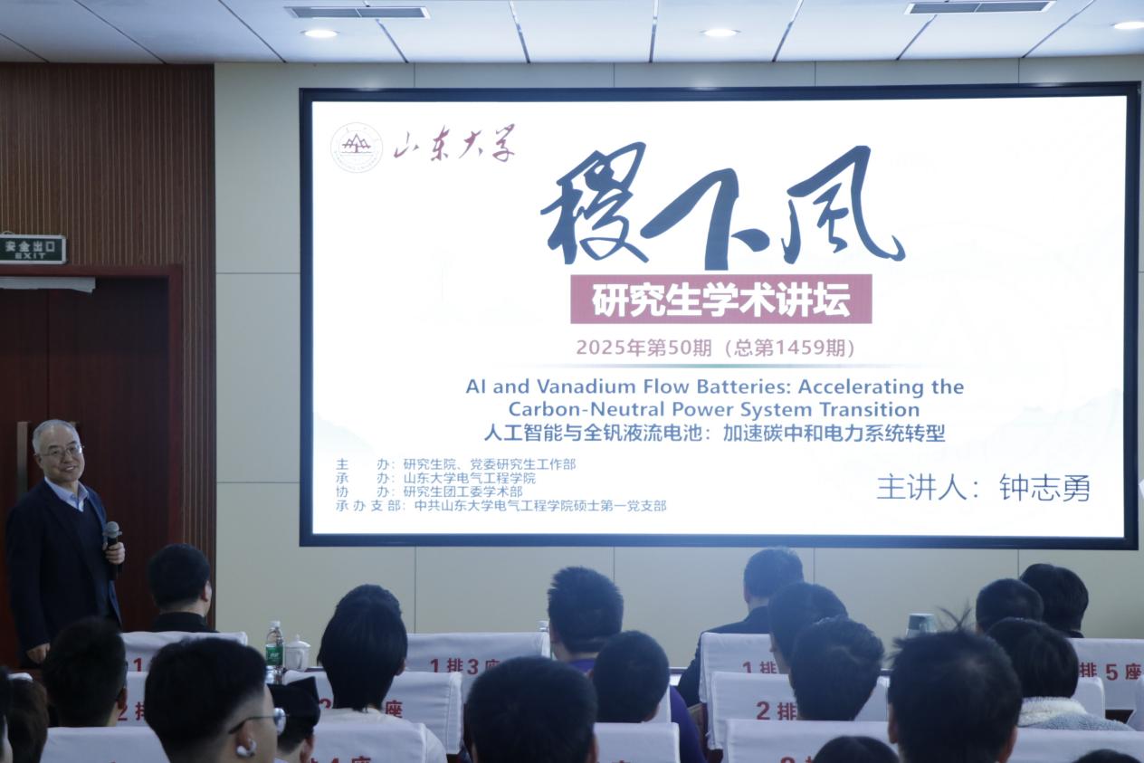 2025年12月18日,由山東大學(xué)研究生院、黨委研究生工作部主辦,電氣工程學(xué)院承辦的2025年第50期(總第1459期)“稷下風(fēng)”研究生學(xué)術(shù)講壇在千佛山校區(qū)電力樓四樓報(bào)告廳順利舉行。本期講壇特邀加拿大工程院院士、香港理工大學(xué)電機(jī)及電子工程學(xué)系系主任、IEEE PES候任主席鐘志勇作主題報(bào)告。講壇由電氣工程學(xué)院劉玉田教授主持。