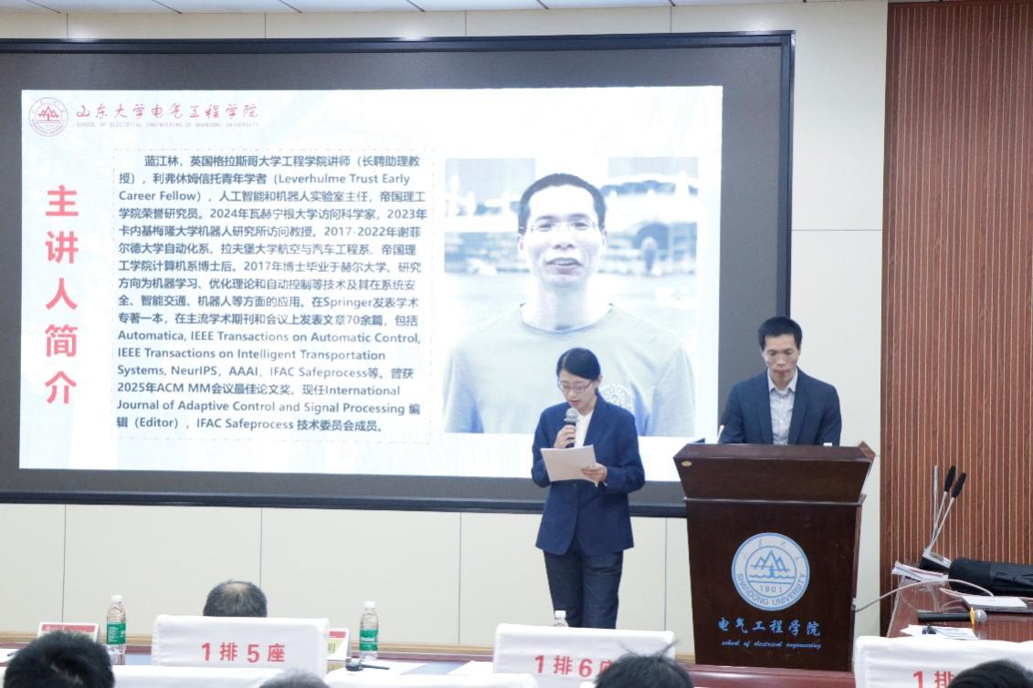1月6日,電氣工程學(xué)院第34期“經(jīng)緯韻”研究生學(xué)術(shù)思想講壇在千佛山校區(qū)電力樓四樓報(bào)告廳成功舉辦。講壇邀請(qǐng)到英國(guó)格拉斯哥大學(xué)工程學(xué)院助理教授藍(lán)江林以“學(xué)習(xí)賦能的自主系統(tǒng):控制、驗(yàn)證、監(jiān)控和交互”為題開(kāi)展分享。講壇由電氣工程學(xué)院劉彥華助理研究員主持。