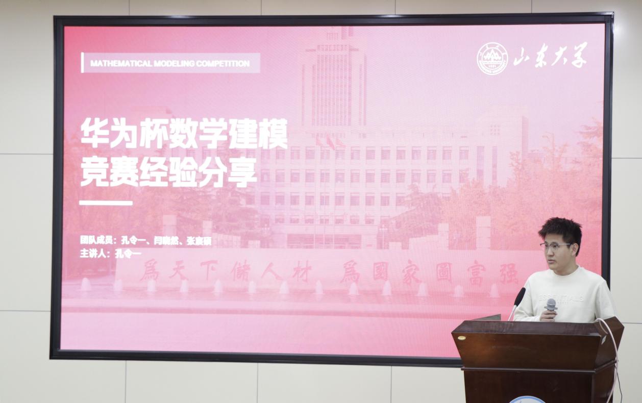 接下來,孔令一代表“非凡大師隊”分享了“華為杯數(shù)學(xué)建模競賽經(jīng)驗”的內(nèi)容。他圍繞賽前準備、團隊協(xié)作、時間管理、選題策略與寫作表達等關(guān)鍵環(huán)節(jié),系統(tǒng)梳理了五天四夜高強度競賽的實戰(zhàn)經(jīng)驗。他強調(diào),參賽不僅是爭奪獎項,更是對科研能力、團隊協(xié)作與抗壓能力的全面錘煉,建議同學(xué)們盡早組建結(jié)構(gòu)合理的團隊,明確分工、高效溝通,并善用AI工具提升效率。最后,他鼓勵大家樹立“完成比完美更重要”的心態(tài),堅持到底,在過程中實現(xiàn)自我突破與成長。